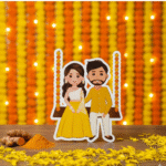 Haldi couple cutout 🌿, Haldi platter decoration ✨, Haldi tray décor 🌸, Haldi backdrop cutout 🌿✨, Haldi function décor 💛, Haldi ceremony decoration 🌿, wedding Haldi props ✨, Haldi theme accessories 💛, couple cutout for Haldi 🌿, festive Haldi decoration ✨, wedding décor cutouts 🌸.